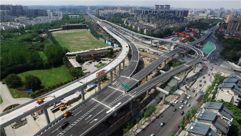 2.新建快速公交高架,连通二环和元华路快速公交(部分路段与快速路连接匝道共线)。起点与二环路高朋大道路口,沿线经过高朋大道及中环路,终点止于三环路石羊立交。