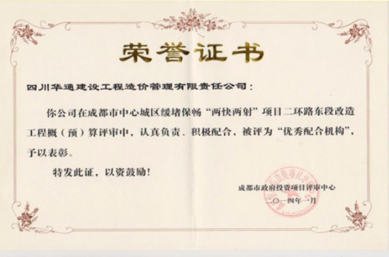 “两快两射”项目二环路东段改造工程优秀配合机构