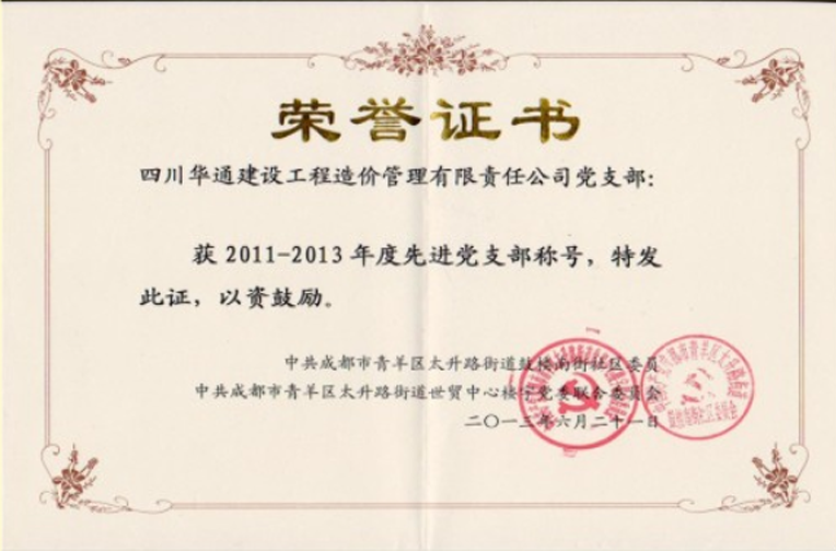 2011-2013年度先进党支部称号